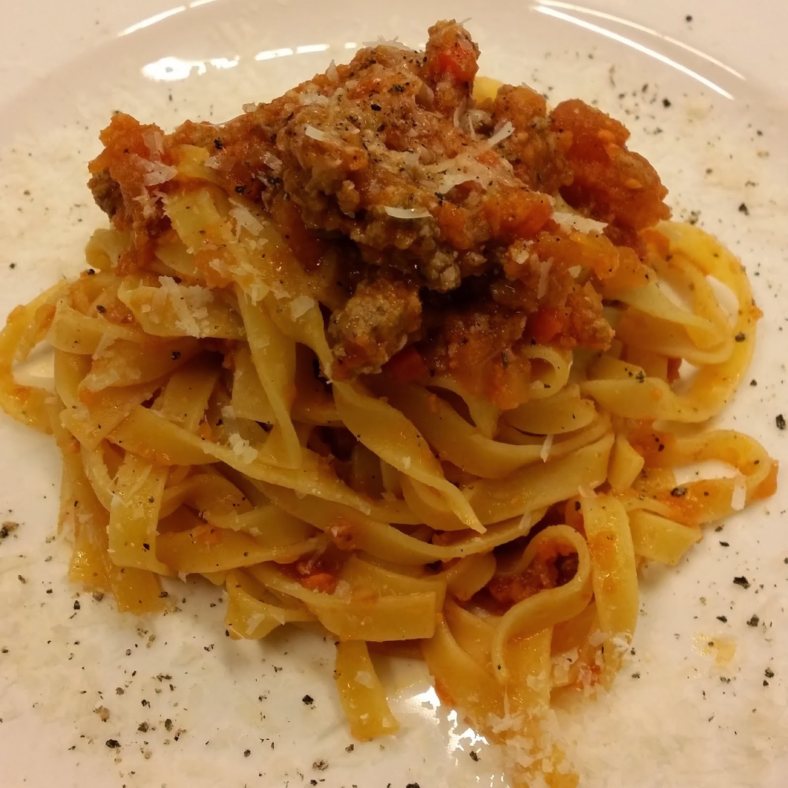 My favourite choice of pasta and a traditional take on the bolognese sauce.